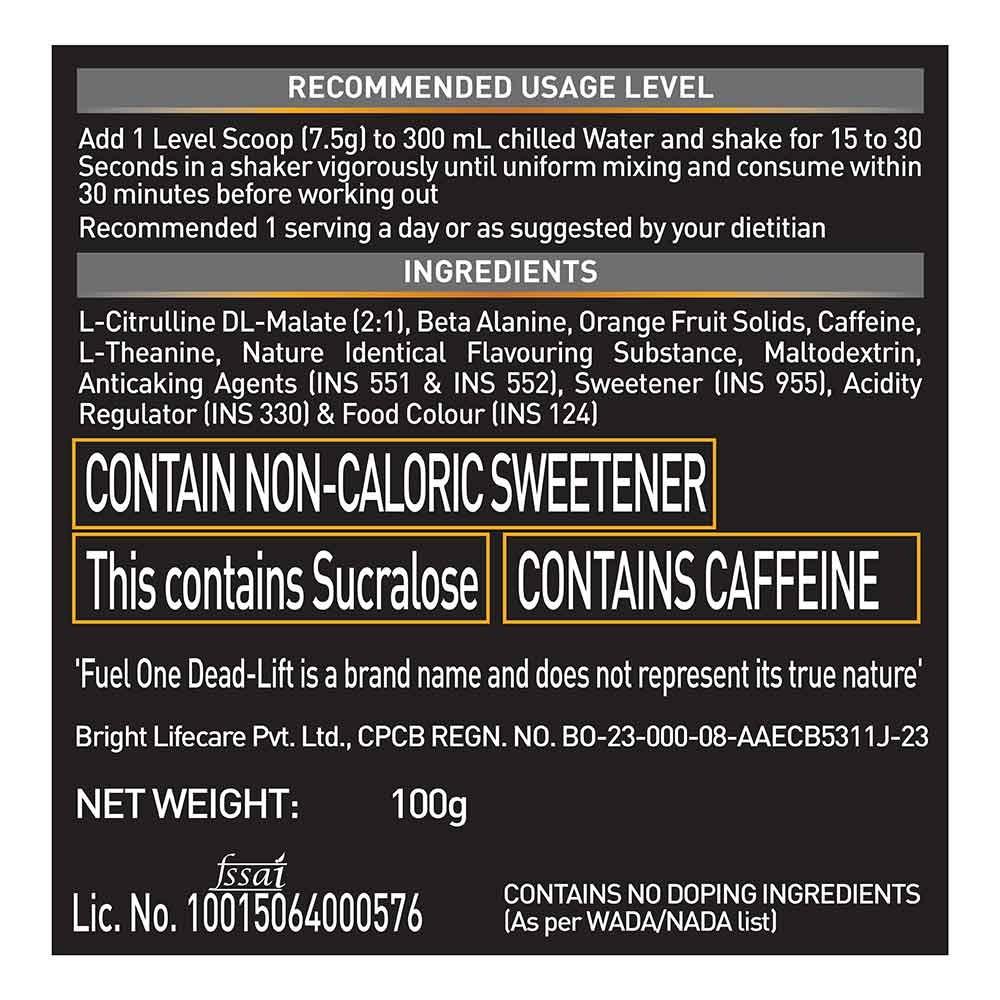 Product Details of Fuel One Dead-Lift Pre Workout, 100 g (0.22 lb)