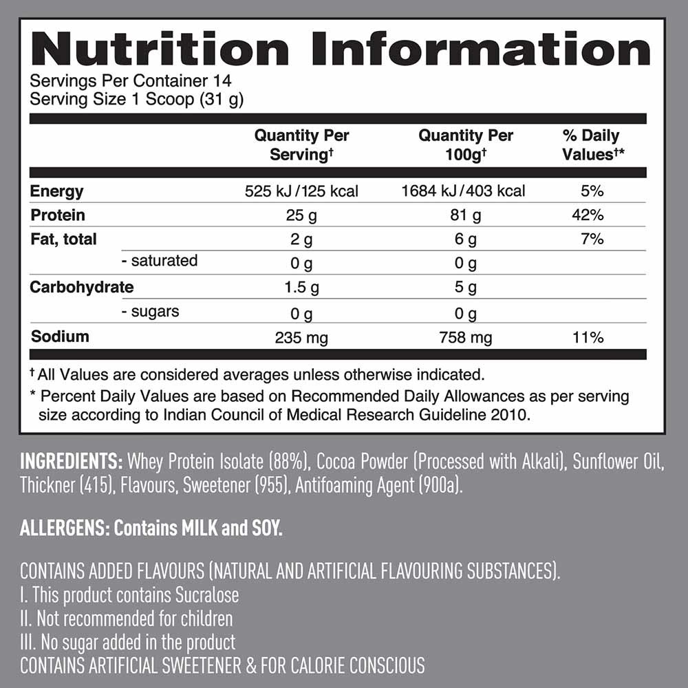 • Premium, quality & Trusted Ingredients: 25 grams of protein from 100% Whey Protein Isolate with naturally occurring BCAAs & Glutamine
