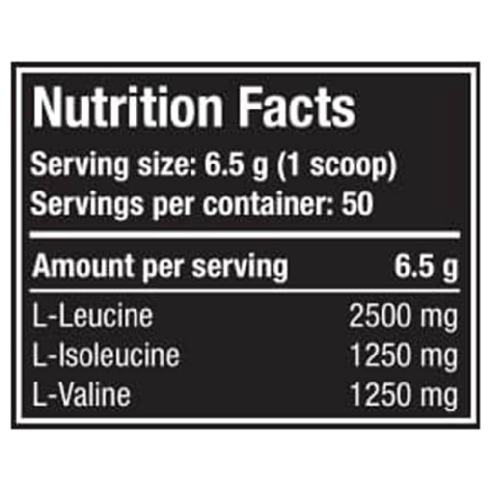 High Efficiency: Despite a smaller total weight (325 g), it still provides a full 50 servings. The 6.5 g serving size is highly concentrated, focusing almost entirely on the 5 g of active BCAAs.