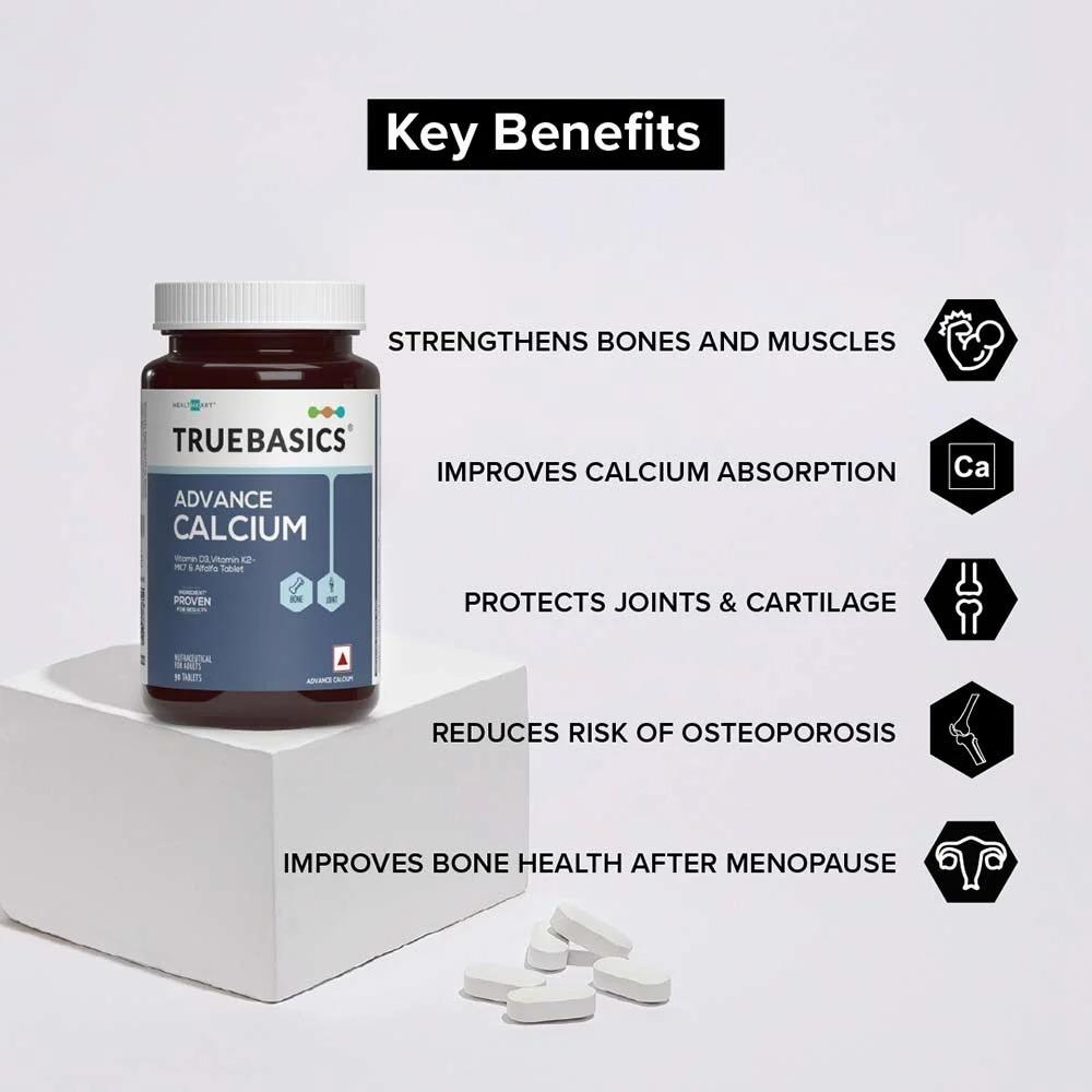 Health Benefits Of TrueBasics Advance Calcium Vitamin D3 & K2MK7 90 Tablets