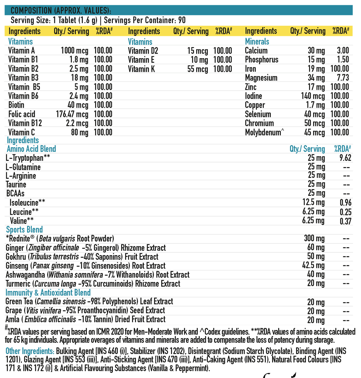 Other Information of TrueBasics Advanced Multivitamin For Sports, 90 tablet(s)