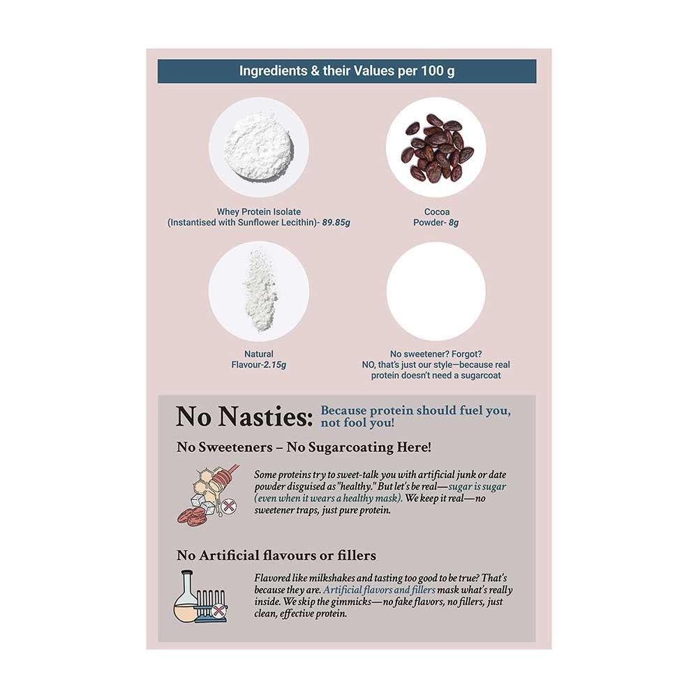 • No Sweeteners. No Fillers. No Preservatives:- This formula contains only what your body needs and nothing it doesn’t. No added sugar. No artificial flavors. No synthetic fillers. Just clean, high-quality whey protein isolate, minimally processed for maximum efficacy.