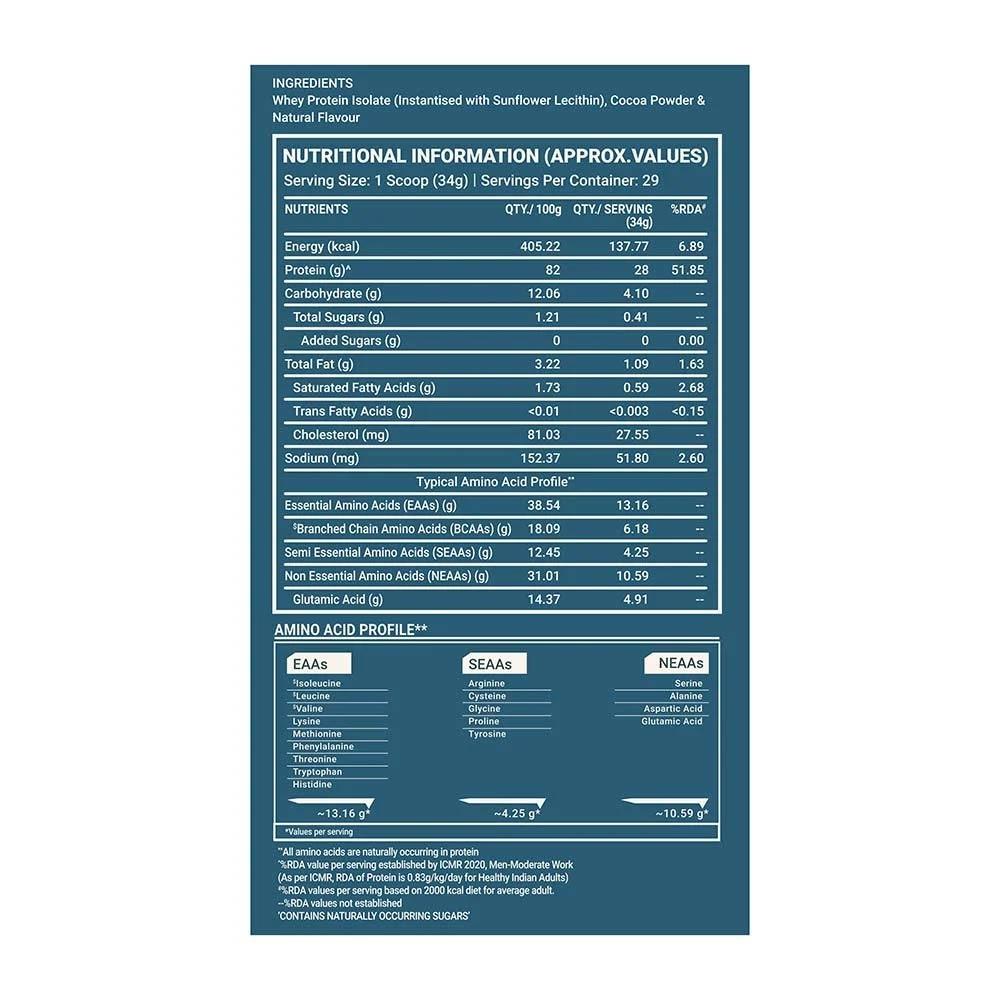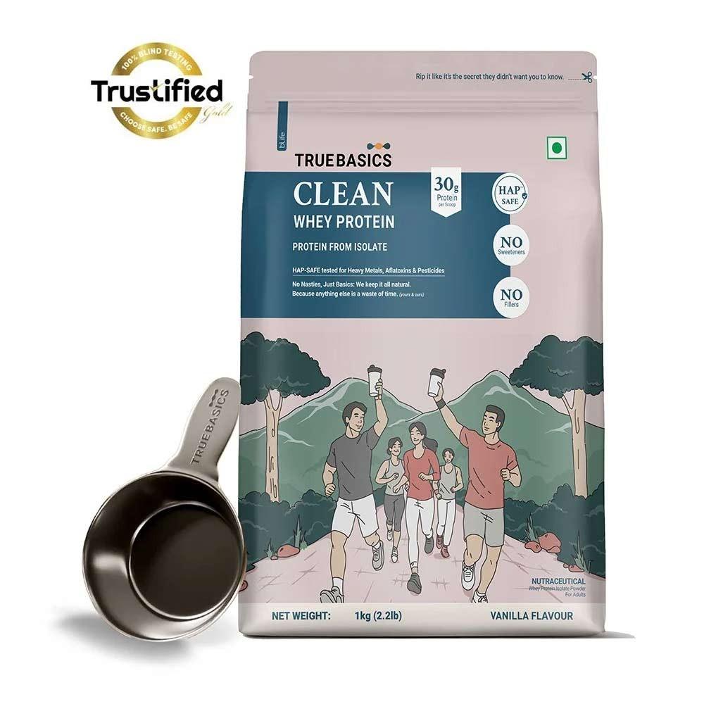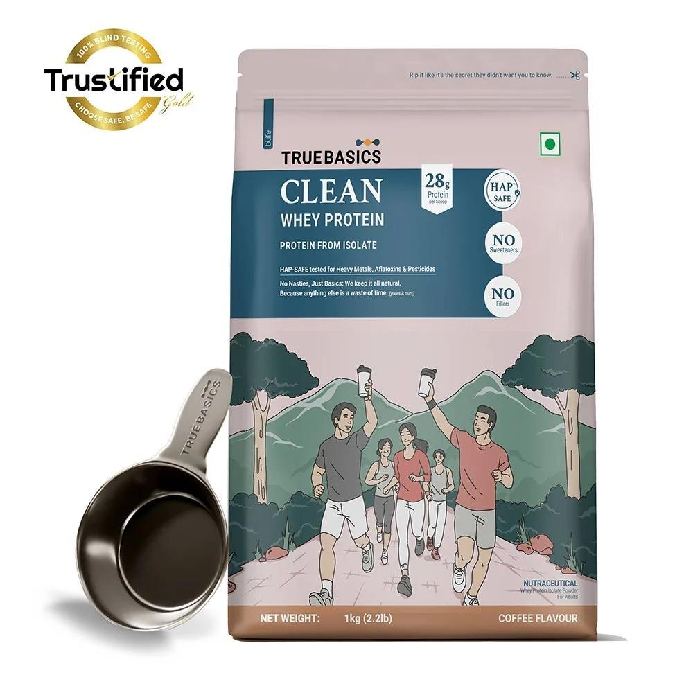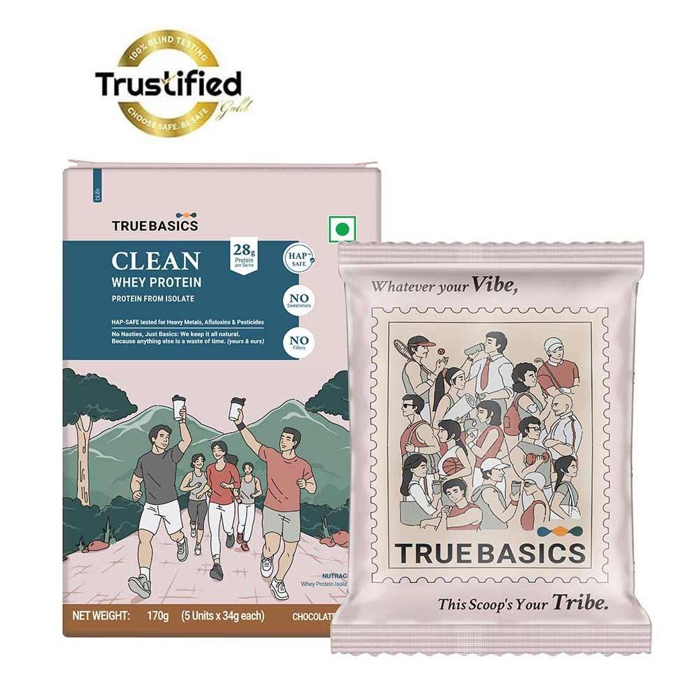 Product Details of TrueBasics Clean Whey Protein Isolate 1kg Chocolate & Steel Pro Shaker 700 ml Combo