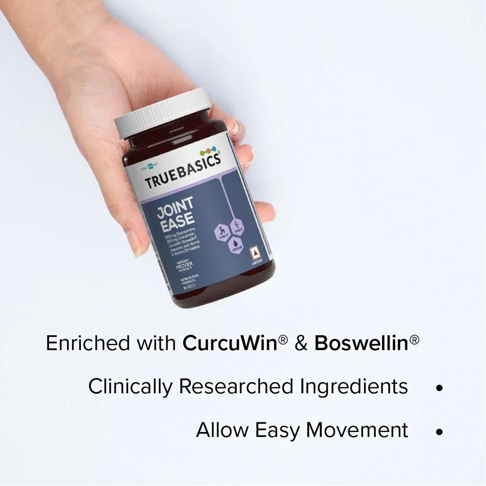 Hyaluronic Acid, Bosewellin® and CurcuWIN® for enhanced hydration In addition to Bosewellin® & CurcuWin®, TrueBasics Joint Ease contains other clinically researched ingredients to support joints. Additionally, it contains Hyaluronic acid, which lubricates joints.