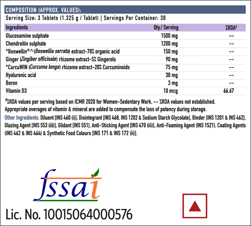 | Chondroitin Sulphate | 1200 mg |